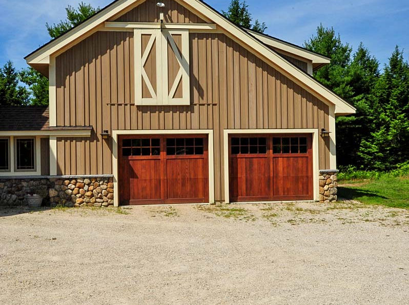 The exterior showcases a sophisticated mix of hand-laid stone, cedar siding, and exposed timber framing that brings a sense of permanence and harmony with the surrounding landscape. A dramatic covered entryway framed by handcrafted log posts introduces the home with an immediate impression of artistry and precision.