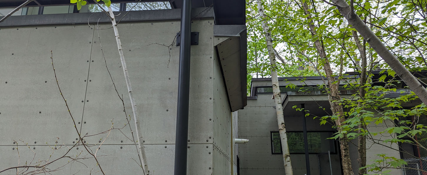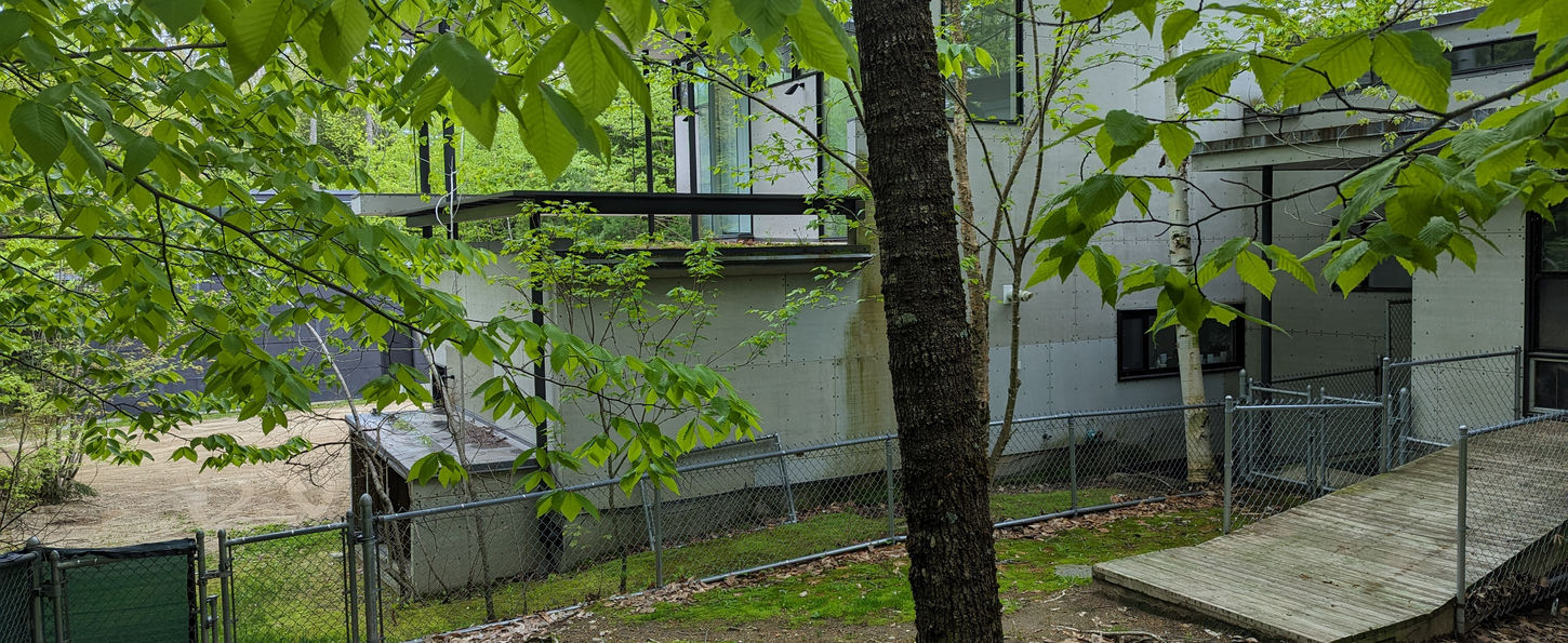 Originally designed in 1997 by Mack Scogin Merrill Elam Architects, the Nomentana Residence is an icon of crafted modernism - defined by sculptural geometry, refined material expression, and a profound dialogue with its wooded lakeside setting. MSME and the client entrusted our firm with executing a meticulous renovation and addition that transforms a former exterior balcony and adjacent roof area into a fully enclosed guest bedroom and upper-level library, seamlessly extending the language of the original architecture.